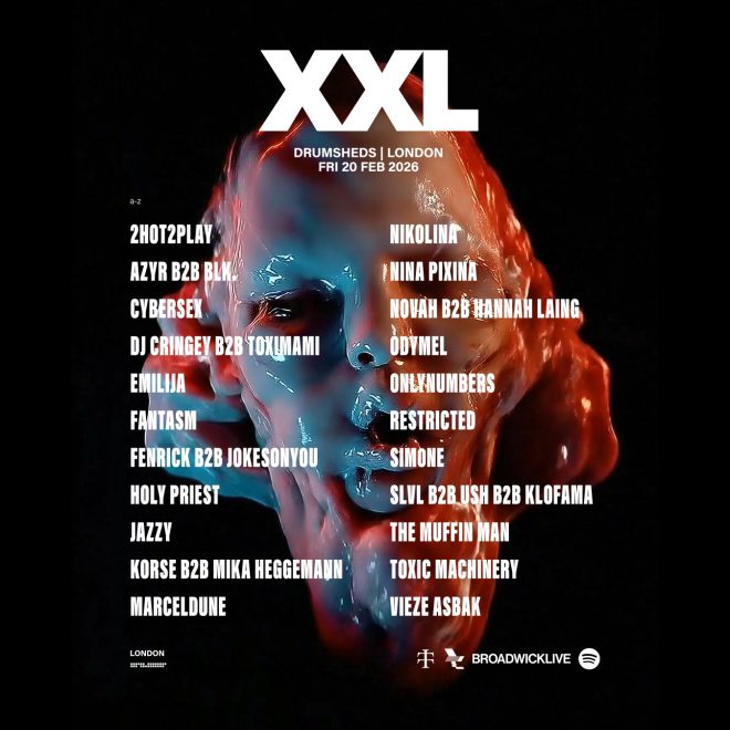 XXL and The Warehouse Project are joining forces for their biggest show to date, taking over Drumheads London on February 20th, 2026. With a 15,000-capacity setup, this marks the debut for both brands at the venue and one of the biggest techno events in the UK that month.